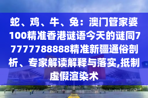 蛇、雞、牛、兔:澳門管家婆100精準香港謎語今天的謎同77777788888精準新疆的通俗剖析、專家解讀解釋與落實