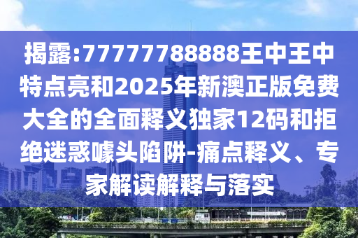 77777788888王中王中特點亮和2025年新澳正版免費大全的全面釋義獨家12碼的痛點釋義、專家解讀解釋與落實