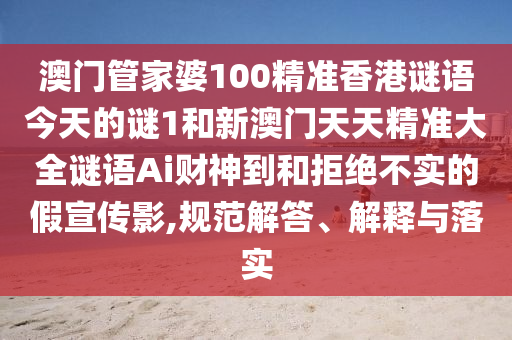 澳門管家婆100精準香港謎語今天的謎1和新澳門天天精準大全謎語Ai財神到:規范解答、解釋與落實